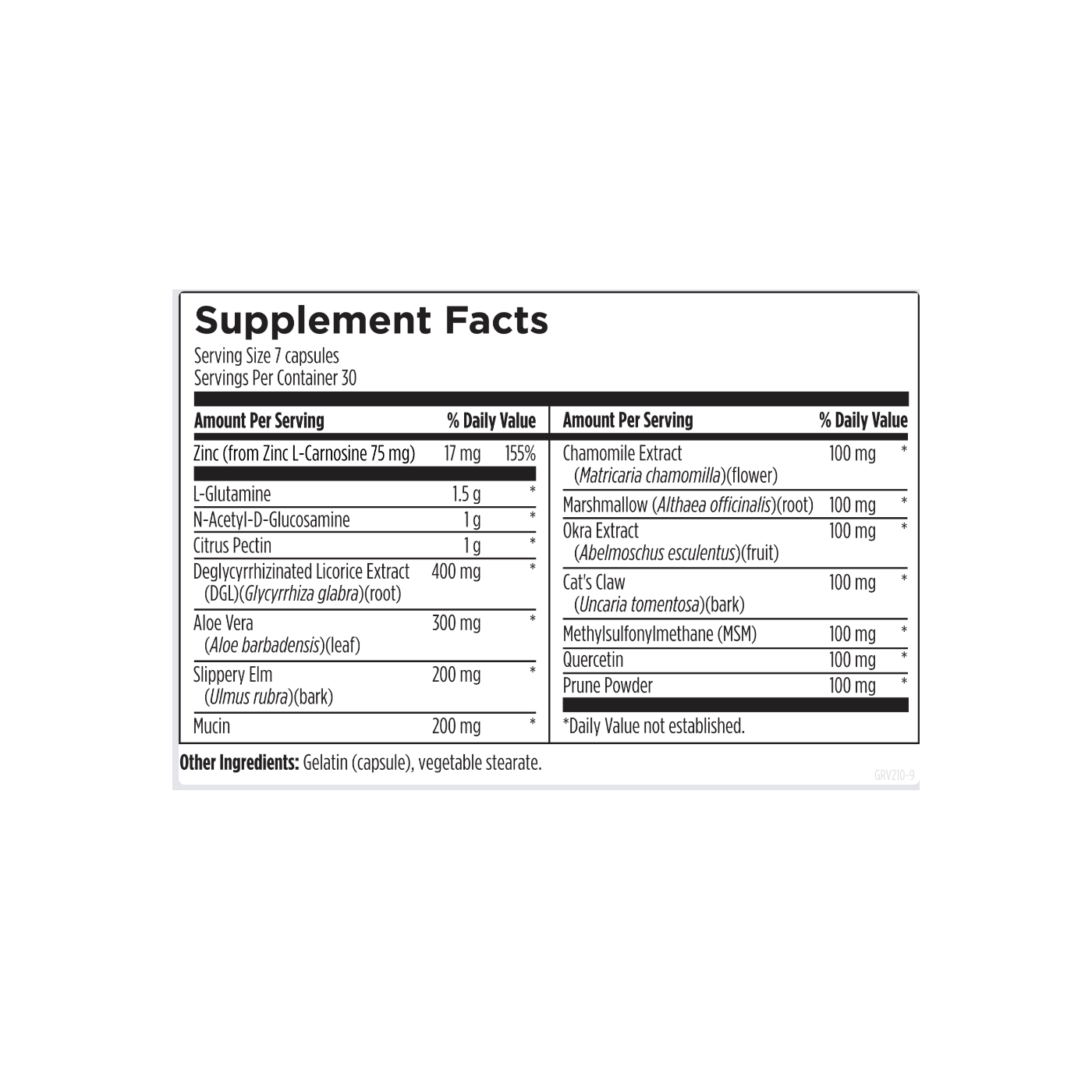 Manufactured in state-of-the-art facilities following strict quality control measures for purity, potency, and consistency. Chelated form of zinc L-carnosine and non-GMO botanicals for optimal support of GI health.